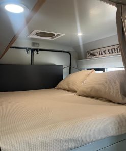 • Two reversible Maxxair fans (intake/exhaust) positioned over the two beds