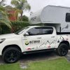 • Portable toilet that can stay inside the van or be moved to the exterior shower tent
